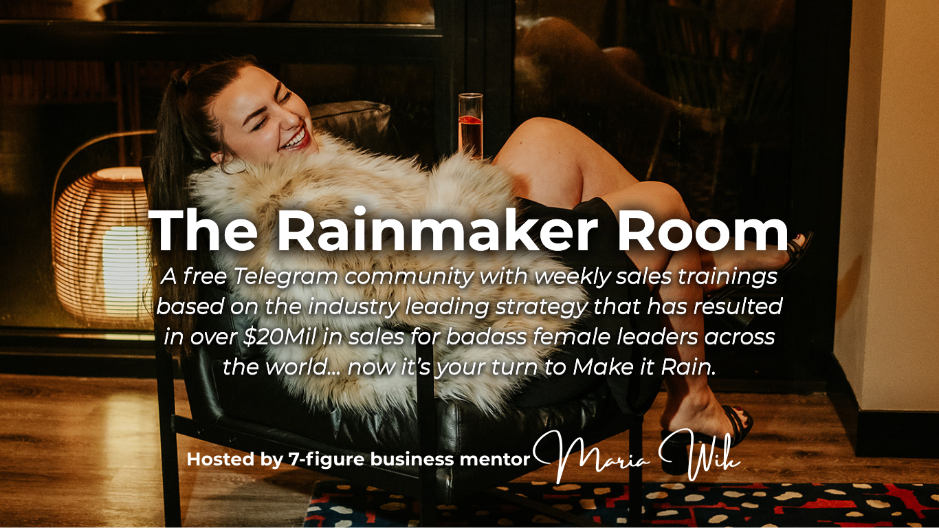 If you're serious about taking your business to the next level... this is the room to be in. This is the room where women become Rainmakers... and make it rain [sales] every damn day. ;)